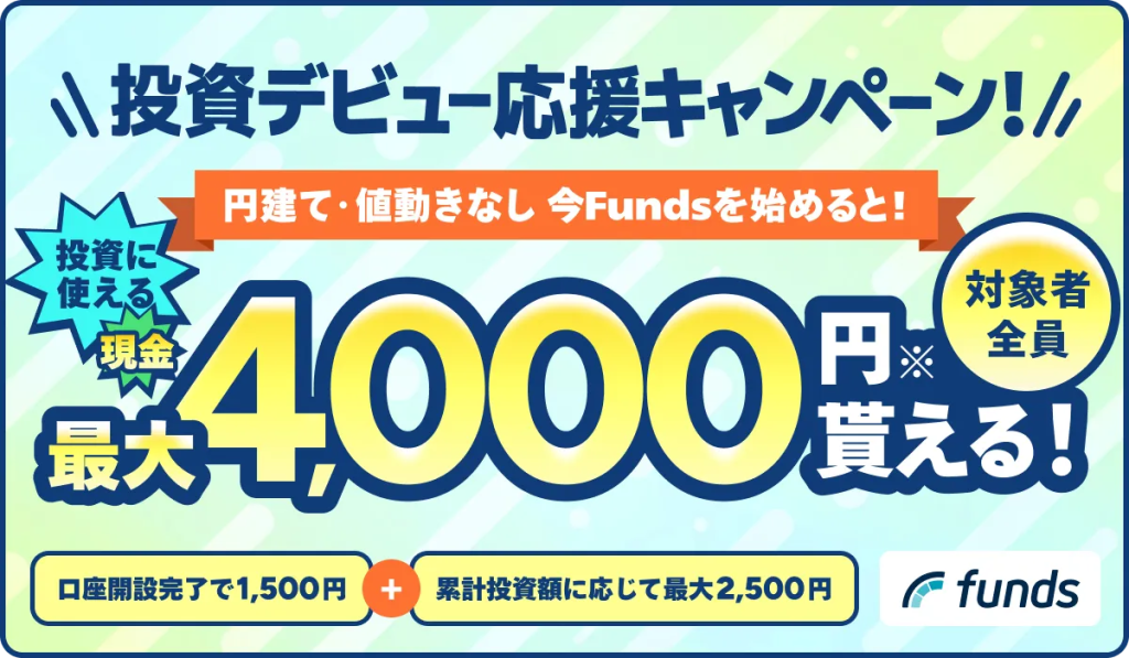 上場企業などを中心に貸付をするソーシャルレンディング「Fundsが新規口座開設の特大キャンペーンを実施中です!